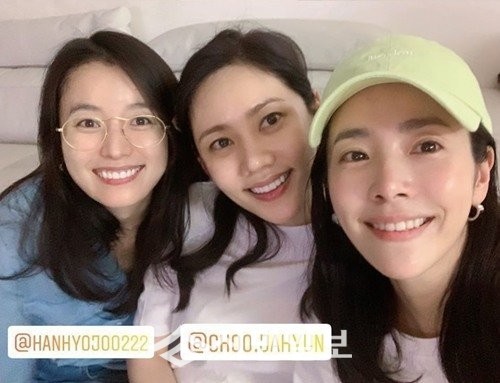 사진 속 한지민은 추자현의 신작 tvN 새 월화드라마 '(아는 건 별로 없지만) 가족입니다' 첫 방송을 다 같이 보기 위해 모인 같은 소속사 식구 한효주, 추자현과 함께 화기애애한 모습을 드러내 훈훈함을 자아냈다.