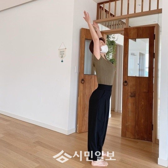 가수 나비는 자신의 인스타그램을 통해 "솟은 어깨 내리고 굽은 등 펴기 #매일조금씩 #요가 #마음수련"이라는 글과 함께 사진을 게재했다.