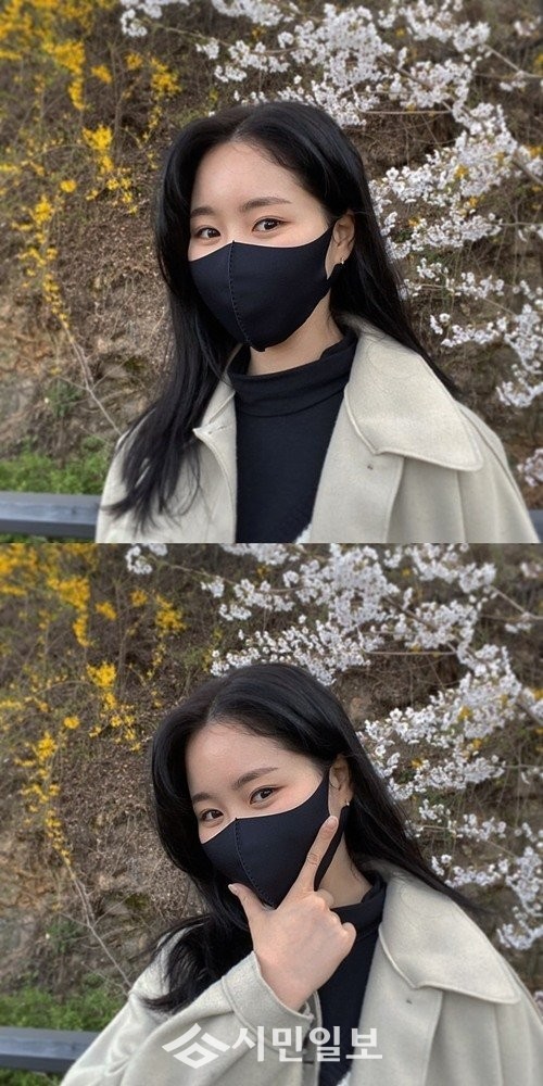 배우 진지희는 자신의 인스타그램에 "#봄 #산책 #사회적거리두기 #마스크 필수"라는 글과 함께 사진 두 장을 게재했다.