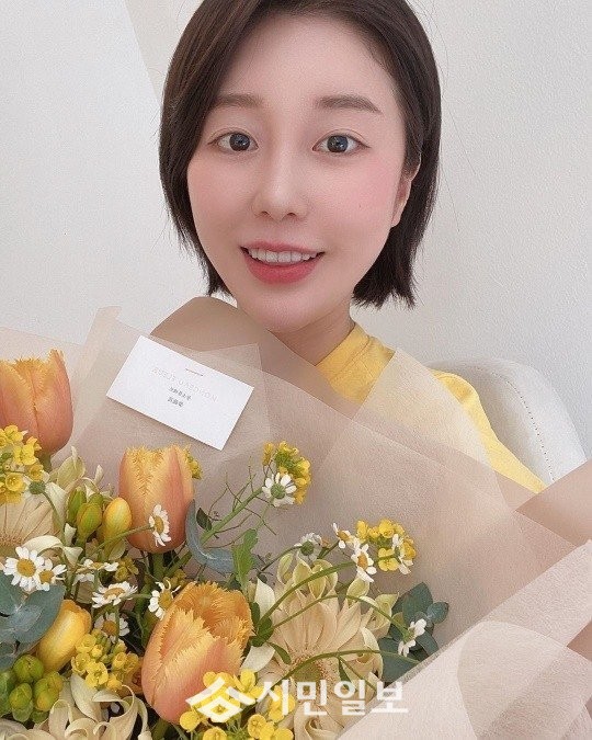 사진 속 나비는 화사한 미모를 뽐내며 노란색 꽃들이 가득 담긴 꽃다발을 들고 환한 미소를 드러내 팬심을 사로잡았다.