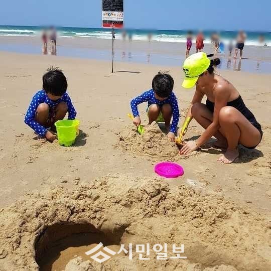 공개된 사진 속 황혜영은 아이들과 함께 바닷가에서 모래놀이를 하고 있는 모습으로 훈훈함을 자아냈다.