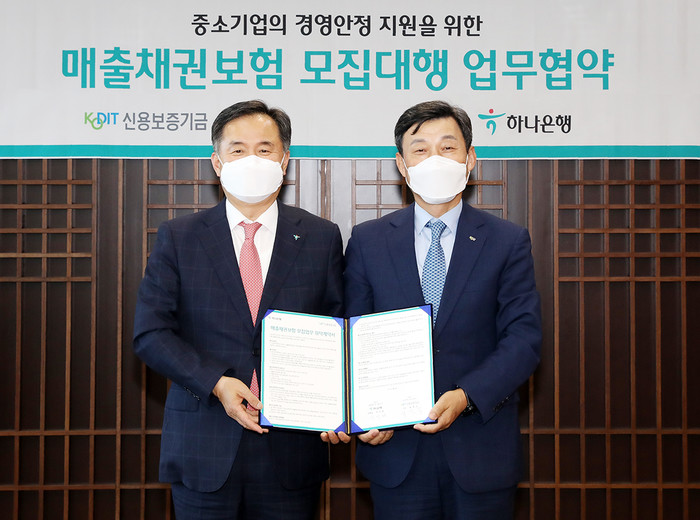 [시민일보 = 여영준 기자] 하나은행은 신용보증기금과 4일 오후 하나은행 본점에서 중소기업의 연쇄도산방지 및 경영안정망 강화 지원을 위한 '매출채권보험 모집 업무협약'을 체결했다고 밝혔다.