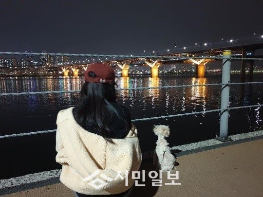공개된 사진 속 김사랑은 반려견 아이와 한강를 바라보며 다정한 분위기를 드러내 훈훈함을 자아냈다.