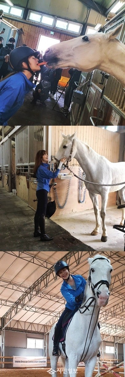 이어 "#승마 #승마인 #애마부인 #start #살아있음을느낀다 #본능적으로 #에너지뿜뿜 #신나죽음 #말달리자 #몸이기억해 #happy #말타는여자 #당근 #빼빼로게임 #따라하면안돼요 #볼빨간사십대 #뭉콩룽옹밍"라는 글도 더했다.