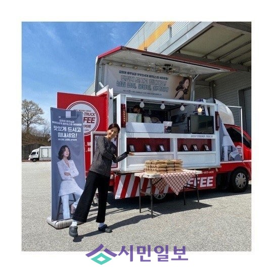 공개된 사진 속에는 김희애가 여신 미모를 뽐내며 선물 받은 간식차 앞에서 환한 미소를 드러내 훈훈함을 자아냈다.