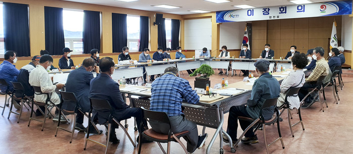 합천군 합천읍(읍장 김해식)은 지난 21일 읍사무소 3층 회의실에서 김윤철 도의원, 최정옥‧권영식 군의원 등 관내 기관사회단체장이 참석한 가운데 2021년 5월 이장회의를 개최했다.