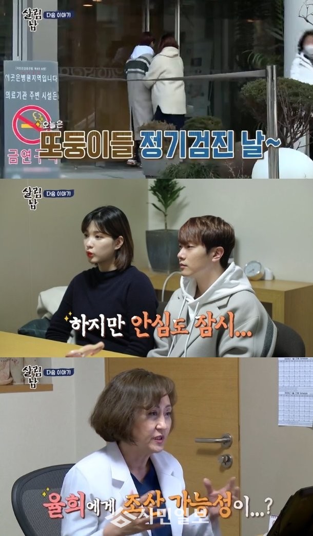 이어 방송말미 예고편을 통해서는 율희의 뱃속 딸 쌍둥이 정기검진날이 그려졌다. 최민환 율희 부부는 “떨린다. 얼마나 컸으려나?”라며 병원을 찾았다. 그렇게 도착한 병원에서 의사는 “두 아가가 잘 자라고 있다. 보니까 조금 일찍 조산 우려가 있다. 입원을 좀...”이라며 입원을 권했다.