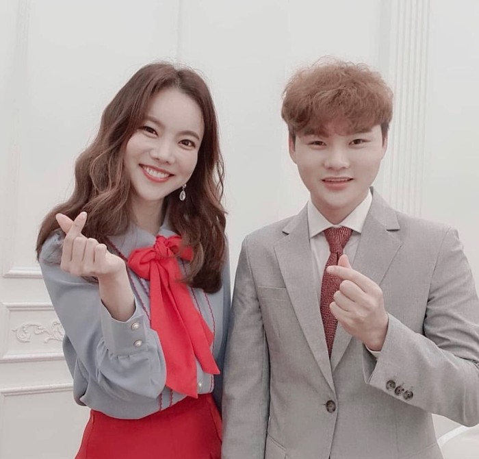 공개된 사진 속 박서진은 웃으며 김나희와 손하트 포즈를 취하고 있다.