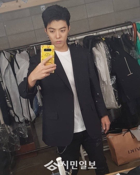 공개된 사진 속 강남은 훈훈한 블랙 슈트를입고 거울을 향해 카메라를 댄 채 셀카를 남기고 있는 모습으로 시선을 사로잡았다.