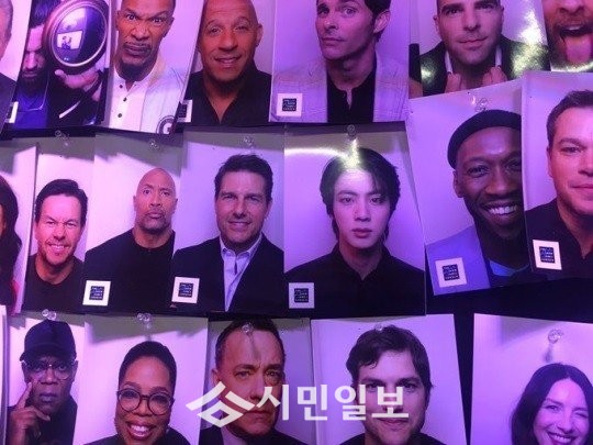 공개된 사진에는 진의 사진은 할리우드 배우 톰 크루즈의 사진 옆에 붙어 웃음을 자아냈다.