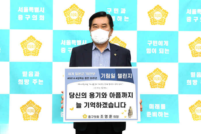 [시민일보 = 여영준 기자] 조영훈 서울 중구의회 의장이 6일 세계 일본군 위안부 기림일 챌린지에 동참했다.