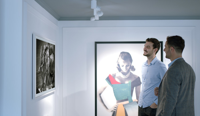 | ▲ 프랑스 파리에 위치한 옐로우코너 갤러리에서 고객들이 삼성 더 프레임으로 사진 작품을 감상하는 모습.(사진제공=삼성전자) |