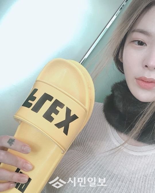 사진 속에는 염따 슬리퍼를 든 장재인의 모습이 담겨 눈길을 모았다.
