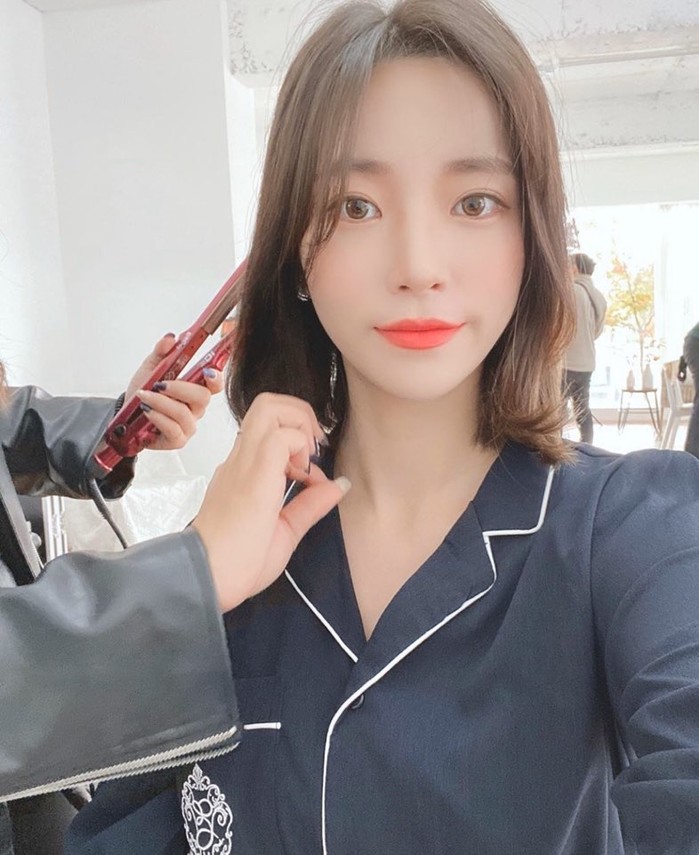 공개된 사진 속 소리는 헤어 스타일링을 받고 웃으며 카메라를 쳐다보고 있다.