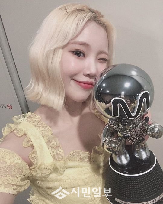사진 속 주이는 Mnet '엠카운트다운' 트로피를 들고 있는 모습으로 시선을 사로잡았다.