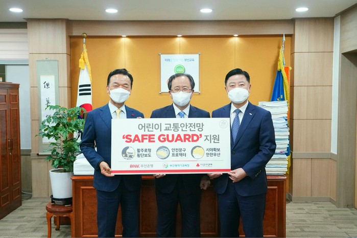 [시민일보 = 여영준 기자] BNK부산은행이 7일 오후, 부산시교육청에서 어린이 교통안전 인프라 구축을 위한 ‘SAFE GUARD(보호장치)’ 지원식을 개최했다.