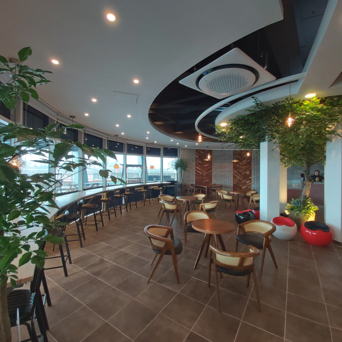 카페 내·외부에는 연꽃, 장미 등이 그려진 인테리어와 벽화, 안락 소파, 비취조명이 어우러진 포토존 등을 설치했으며, 기둥을 타고 오른 멋스러운 인조목은 숲의 나무를 연상하게 한다.