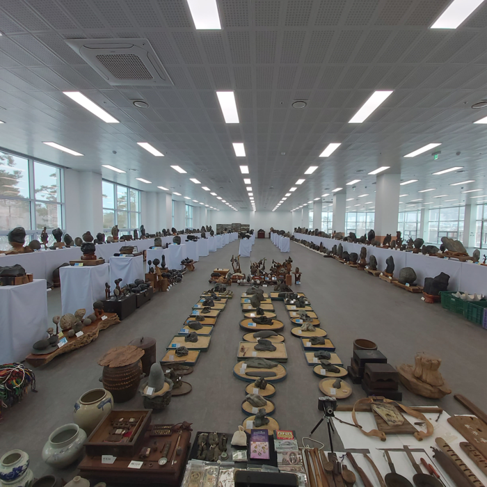 | ▲ 일로읍 이계성씨, 20여년간 수집한 수석 1500여점, 그림 7점을 비롯한 예술작품을 무안군에 기증했다.(출처=무안군청) |