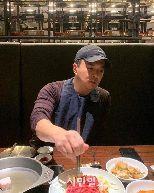 정준은 자신의 인스타그램 계정에 사진과 함께 "고기 먹기 전 육회로 ㅋㅋㅋ 피곤함을 고기로 업업~~^^ 유지는 앞에서 뭐하니~~? ㅋㅋㅋ"이라고 글을 남겼다.