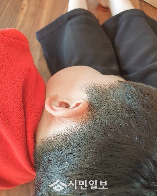 공개된 사진 속에는 엄마의 무릎을 베고 누워 있는 아들 건우 군의 모습이 담겨 훈훈함을 자아냈다.