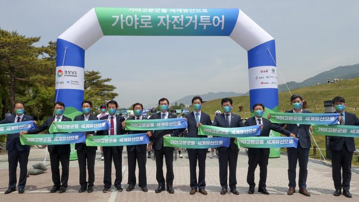 합천군(군수 문준희)은 경상남도, 가야고분군 관련 지자체와 지난 14일 김해 대성동고분박물관에서 영호남 화합을 통해 가야고분군의 성공적인 세계유산 등재를 기원하는 '가야로 자전거투어' 출정식을 개최했다.