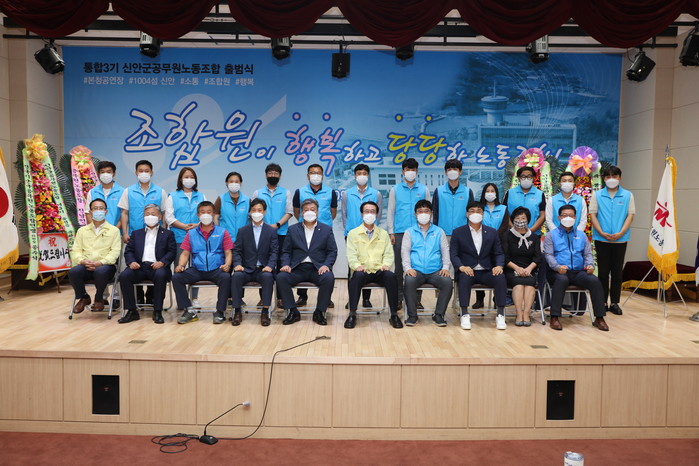 이날 출범식에는 박우량 신안군수, 신안군의회 김혁성 의장, 이종주 운영위원장, 최미숙 행정복지위원장, 이상주 의원, 김용배 의원과 대한민국공무원노동조합총연맹 전국시군구 전남연맹 박경민 위원장 등 코로나 19로 인한 사회적 거리두기 방역수칙을 준수하여 최소 인력만 참석한 가운데 공로패 전달, 이임사, 취임사, 축사, 임원진 소개 순으로 진행됐다.