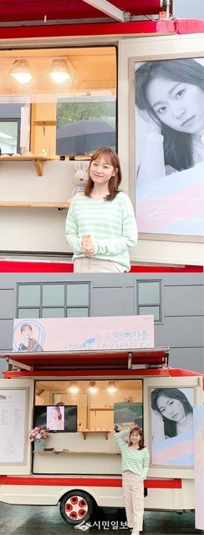 공개된 사진 속 김슬기는 상큼한 미모를 뽐내며 커피차 선물에 미소를 짓는 모습으로 훈훈함을 자아냈다.