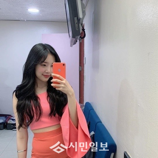 사진 속 윤채경은 코랄 컬러의 옷을 입고 상큼발랄한 미모를 뽐내며 화사한 아우라를 드러내 팬심을 사로잡았다.
