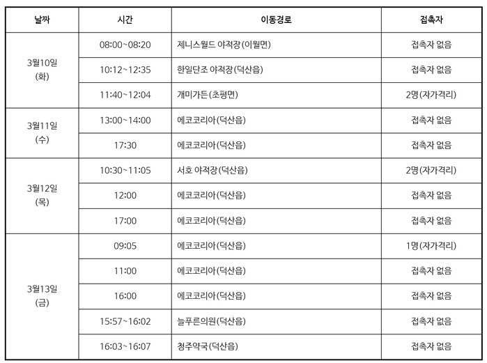 게시판 속 이미지는 생거진천스토리(생거진천story)에 공지된 코로나19 확진자의 이동 동선으로, 공개 당시 해당 확진자에 대한 진실 공방이 확산되고 있다.