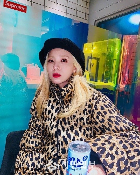사진 속 산다라박은 호피무늬 패딩을 입고 강렬한 레드 립을 소화하며 카리스마 넘치는 모습을 뽐내 감탄을 자아냈다.