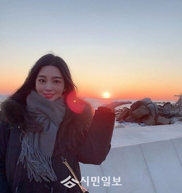 공개된 사진 속 신미래는 활짝 웃으며 해를 가리키며 미모를 뽐내 눈길을 모았다.