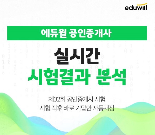 한편, 에듀윌은 32회 공인중개사 시험이 종료된 직후 빠르고 정확합 가답안을 공개한다. 응시생들이 해당 서비스를 통해 공인중개사 정답을 빠르게 확인해 볼 수 있도록 올해도 ‘합격완성 풀서비스’를 마련했다. 또한 해당 서비스를 통해 공인중개사 경쟁률, 난이도 등 시험에 대한 정보를 확인할 수 있다.