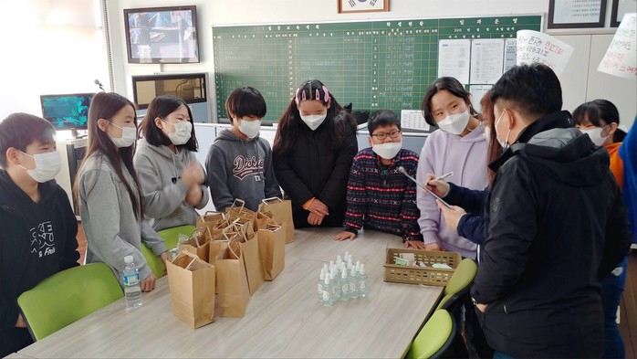 특히 이번 나눔 캠페인에는 마천초 비즈쿨 나눔동아리 학생들의 참여가 돋보였다. 청소년 비즈쿨 나눔동아리 학생들은 비즈쿨 동아리 시간을 활용하여 에센스를 정성스럽게 만들어 교직원에게 판매하였다.