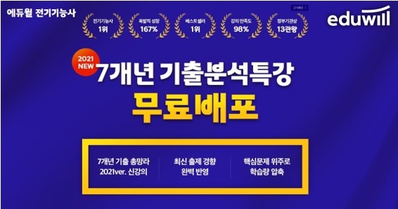 [시민일보 = 여영준 기자] 종합교육기업 에듀윌(대표 박명규) 전기기능사가 시험 학습 전략을 빠르게 파악할 수 있는 '7개년 기출분석특강' 배포에 나섰다.
