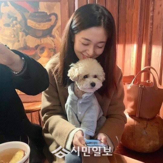 백진희는 자신의 인스타그램에 "봉봉이랑 카페 나들이"라는 게시글과 함께 사진을 게재했다.
