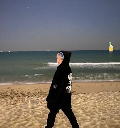 공개된 사진 속 박지훈은 바닷가에서 남다른 꽃미남 비주얼을 뽐내며 카메라에 포착되었다.