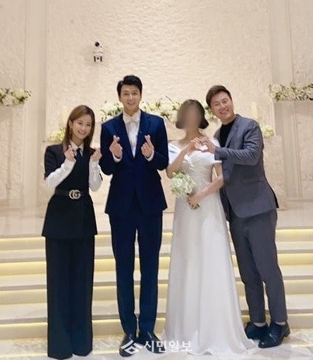 공개된 사진 속 변기수는 김지민과 함께 김승현 결혼식에 참석한 모습이 담겨 시선을 사로잡았다.