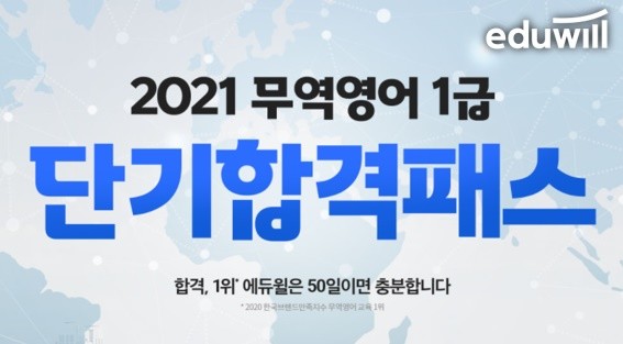 에듀윌 무역영어 ‘2021 무역영어 1급 단기합격패스’에 대한 자세한 사항은 홈페이지를 통해 확인할 수 있다.