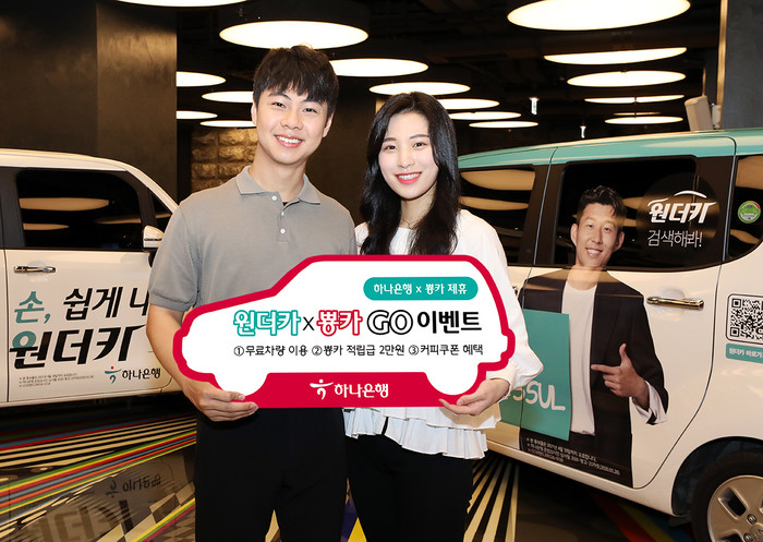 [시민일보 = 여영준 기자] 하나은행은 국내 최초 무료 카셰어링 뿅카와 제휴하여 차량 무료 이용 서비스인 ‘하나은행 원더카 X 뿅카GO’ 이벤트를 시행한다고 3일 밝혔다.