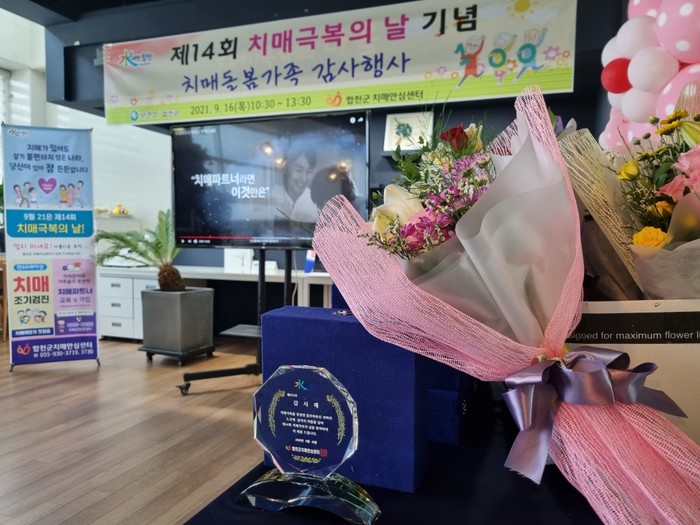 이날 행사는 가정에서 치매환자를 돌보는 가족들의 어려움을 격려하고 감사한 마음을 전하고자 합천군보건소 치매안심센터장인 이미경 소장이 직접 감사패 및 기념품을 전달하고 치매환자를 잘 이해 할 수 있도록 치매파트너 교육도 함께 진행했다.