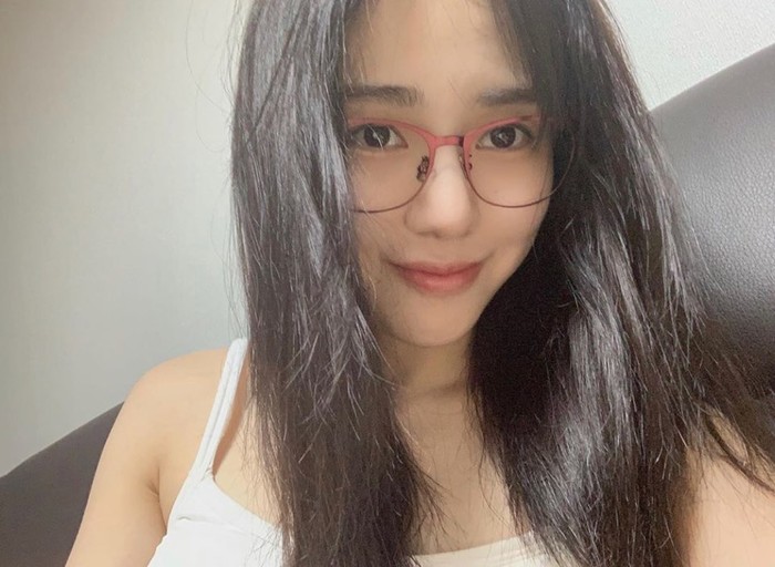 공개된 사진 속 민아는 화장기 하나 없는 얼굴에 빨간 안경을 쓰고 카메라에를 쳐다보고 있다.