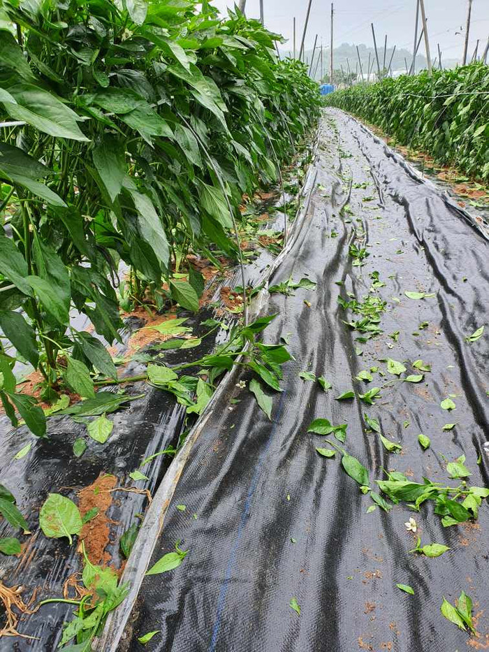 | ▲ 28일 낮 압해읍 동서리일대에 우박폭격으로 피해를 입은 고추밭 현장 |