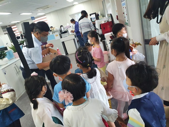 원아들의 정성을 전달받은 야로면사무소 직원들은 아이들의 웃음을 보면서 잠시나마 피로를 잊는 시간을 가졌다. 최유란 원장은 “우리의 작은 노력으로 코로나19로 인한 어려운 시기를 함께 극복하고, 아이들이 주는 희망과 기쁨으로 행복한 추석연휴를 맞이하셨으면 좋겠다”고 전했다.