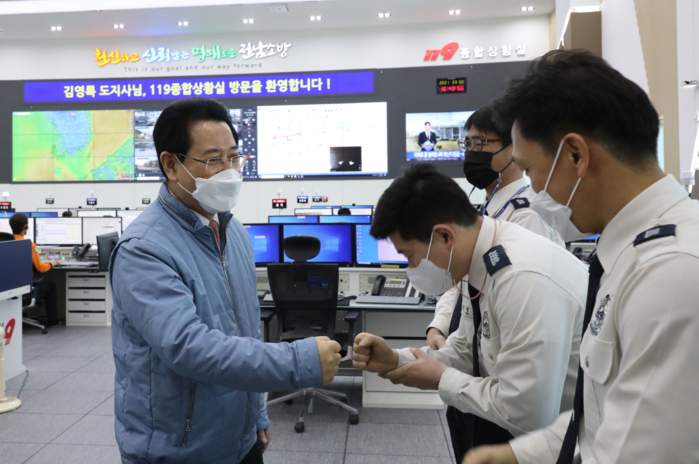 김 지사는 “화재 구조 구급 활동뿐만 아니라 코로나19 대응활동에도 애쓰고 있어 항상 고마운 마음”이라며 “전 직원이 하나가 돼 도민 안전을 위해 최선을 다해달라”고 당부했다.