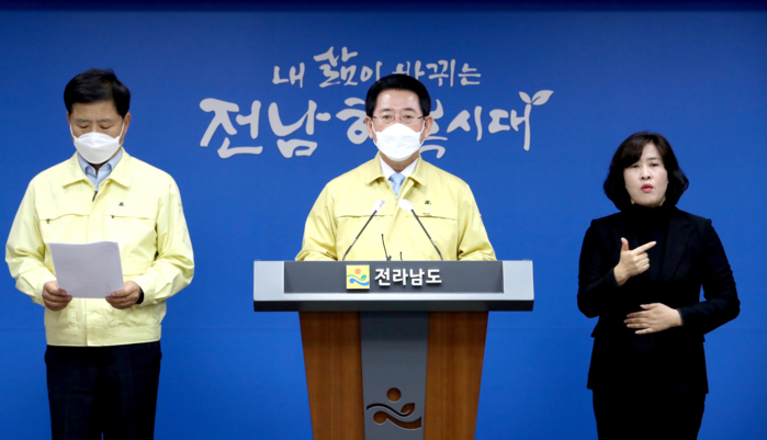 김영록 전라남도지사는 1일 “지난 10월 31일 코로나19 지역감염 확진자 3명이 동시에 발생돼 매우 우려스러운 상황이다”며 “도민들 모두 방역수칙을 적극 준수해 줄 것”을 당부했다.