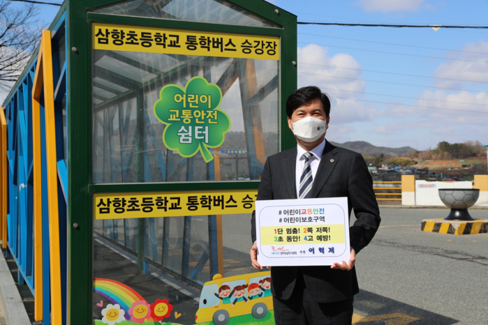 이혁제 위원장은 학생안전을 최우선 과제로 삼고 안전한 통학을 위해 통학버스 승강장 3곳을 설치하는 등 학교 앞 교통안전 시설 현대화에 앞장서고 있다.