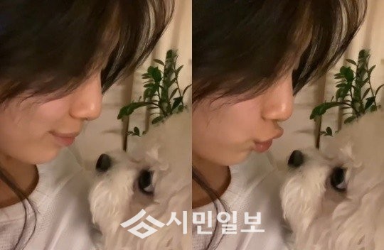 가수 겸 배우 수지는 자신의 인스타그램에 "귀여미랑 뽀뽀밀당"이라는 글과 함께 영상을 게재했다.