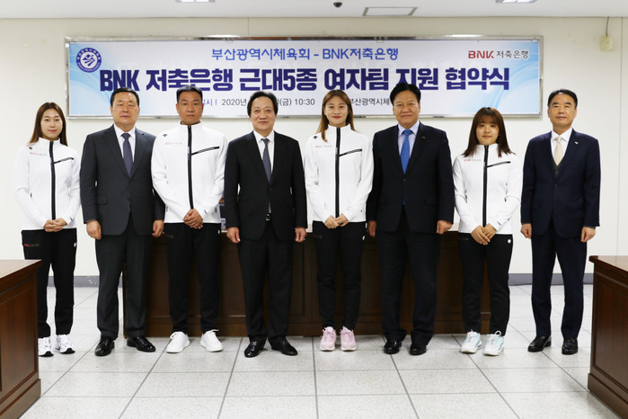 [시민일보 = 여영준 기자] BNK저축은행이 10일 오전, 부산광역시체육회관에서 부산광역시체육회와 근대5종 여자 실업팀 후원을 위한 협약식을 가졌다.