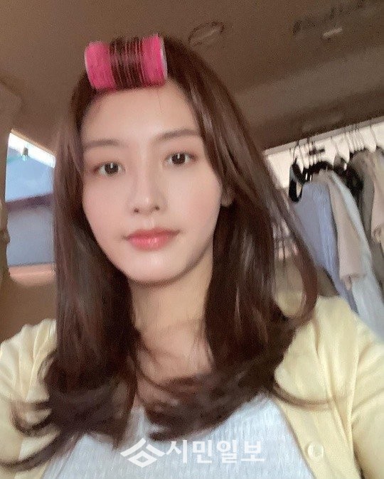 공개된 사진 속 김재경은 차안에 앉아 헤어롤을 말고 인형 미모를 뽐내며 청초한 아우라를 드러내 감탄을 자아냈다.
