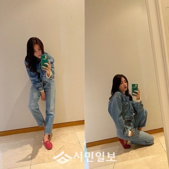 배우 박하선은 자신의 인스타그램에 "오늘의 #출근룩 #청청"이라는 글과 함께 한 장의 사진을 게재했다.